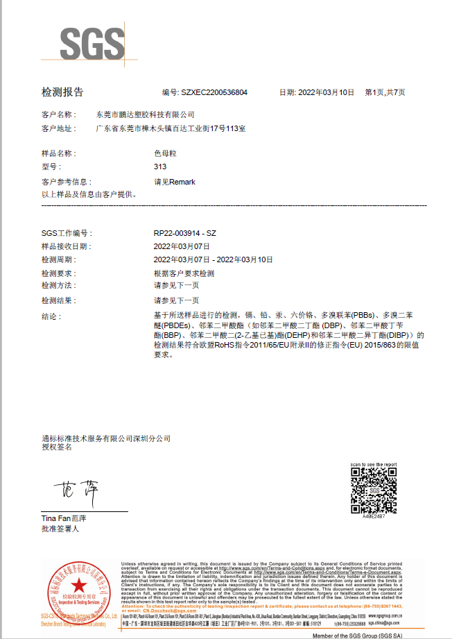 和鵬達塑膠科技有限公司合作很長一段時間了,他們的產(chǎn)品質量好,服務到位,且原材料都通過SGS測試符合歐盟REACH,PaHS、ROHS及無鹵指令,備有美國FDA級食品接觸規(guī)格物料,和他們合作完全沒有后顧之憂!